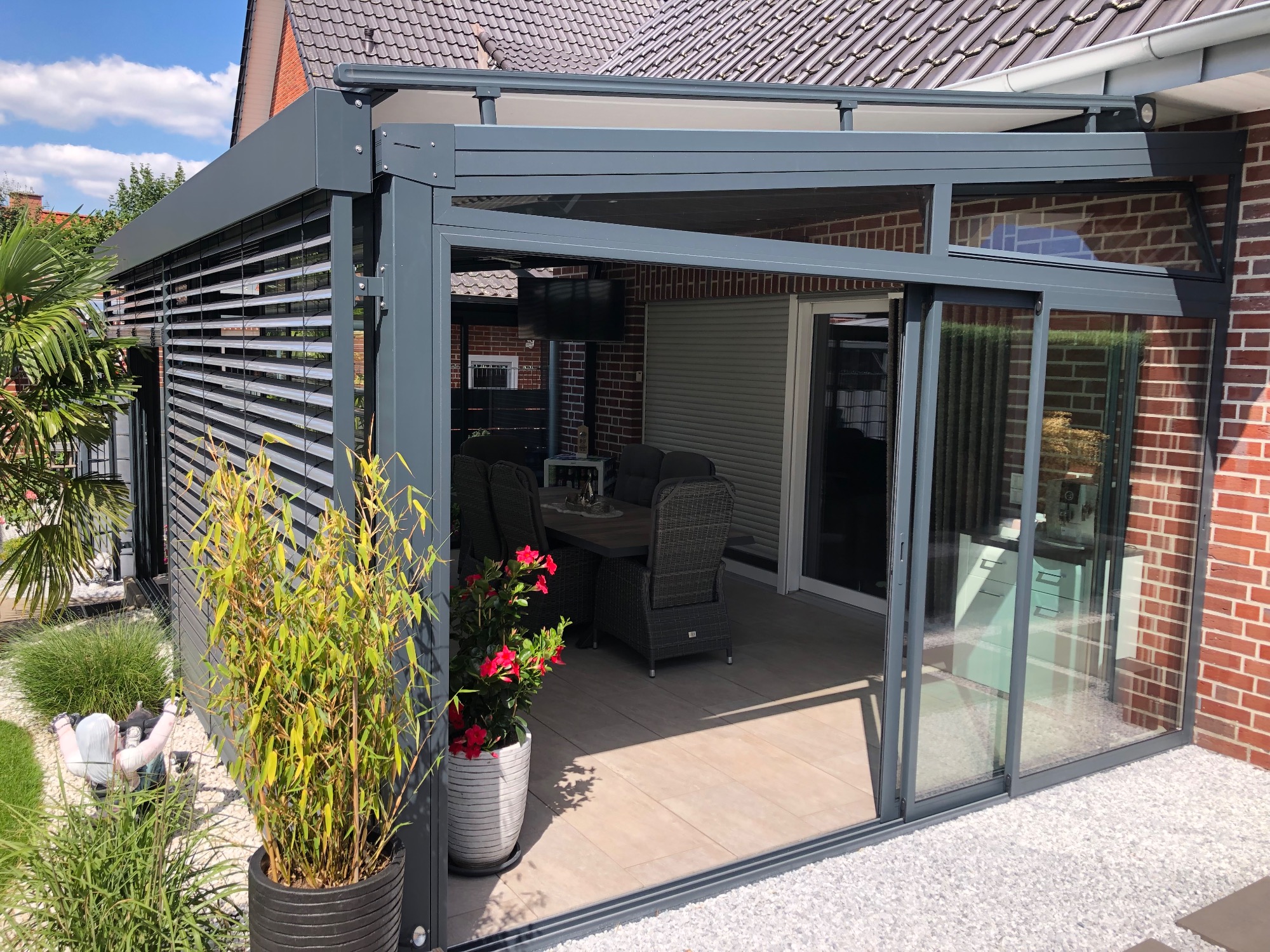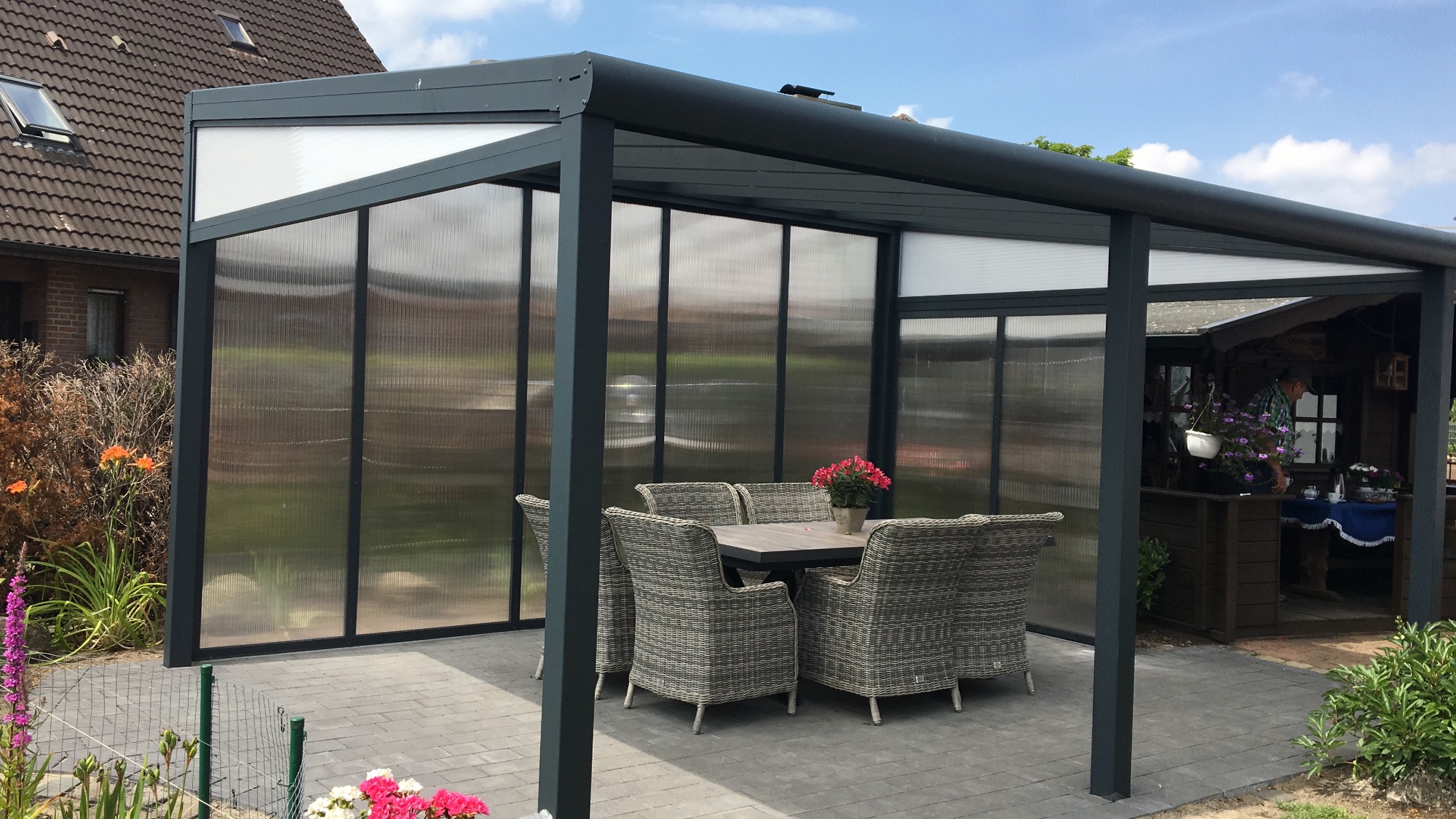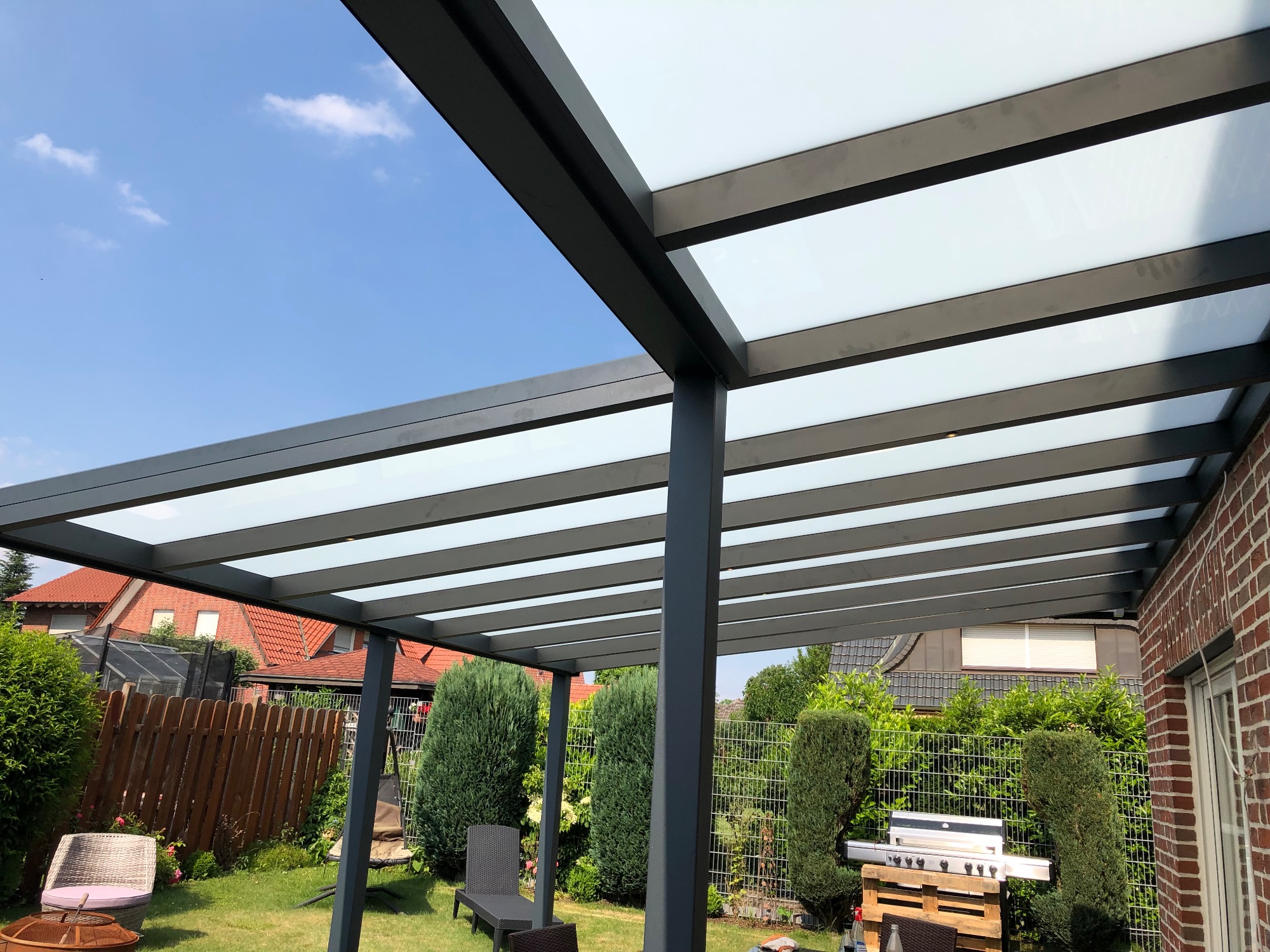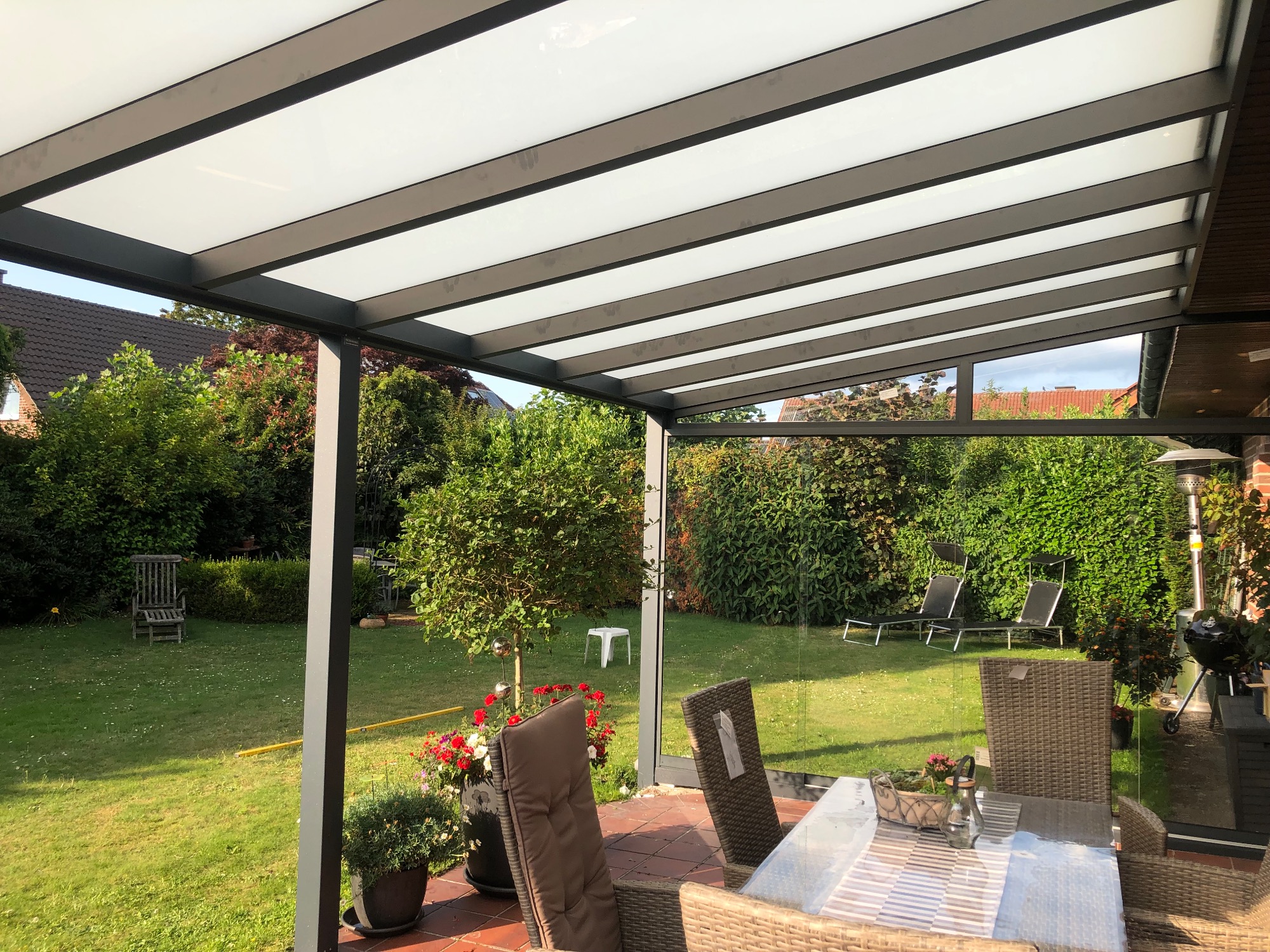 Unsere Projekte im Bereich Terrassendächer spiegeln unsere Leidenschaft für innovative und individuelle Lösungen wieder. Ob modern oder klassisch, wir gestalten Ihre Terrasse mit hochwertigen Materialien und durchdachtem Design. Jedes Projekt wird auf die spezifischen Bedürfnisse unserer Kunden abgestimmt, um ein harmonisches Zusammenspiel von Funktionalität und Ästhetik zu schaffen. Lassen Sie sich von unseren bereits realisierten Terrassendächern inspirieren und gestalten Sie mit uns einen einzigartigen Outdoor-Bereich, der zum Verweilen und Entspannen einlädt.
